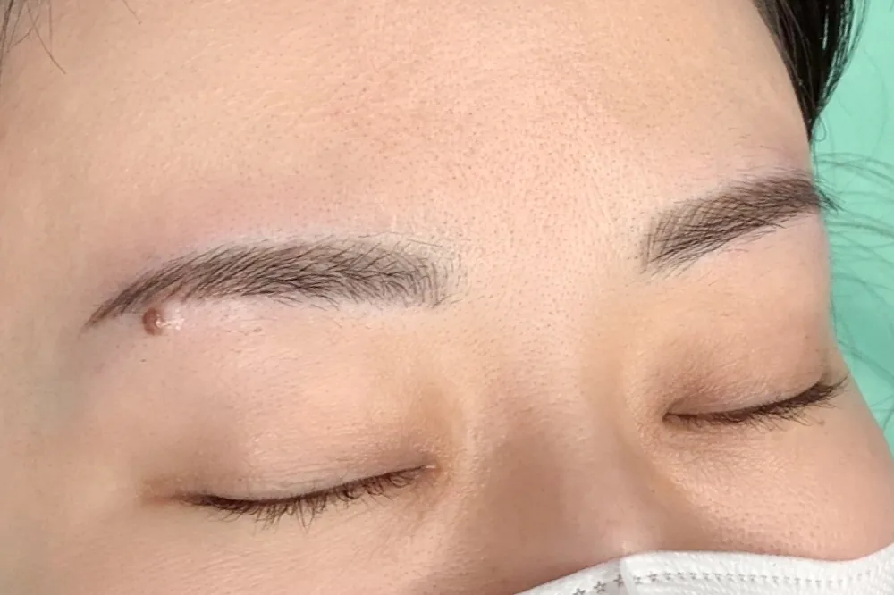 眉毛が伸びてきたら、アートメイクのデザインに沿って眉バサミと毛抜きで整えてください。