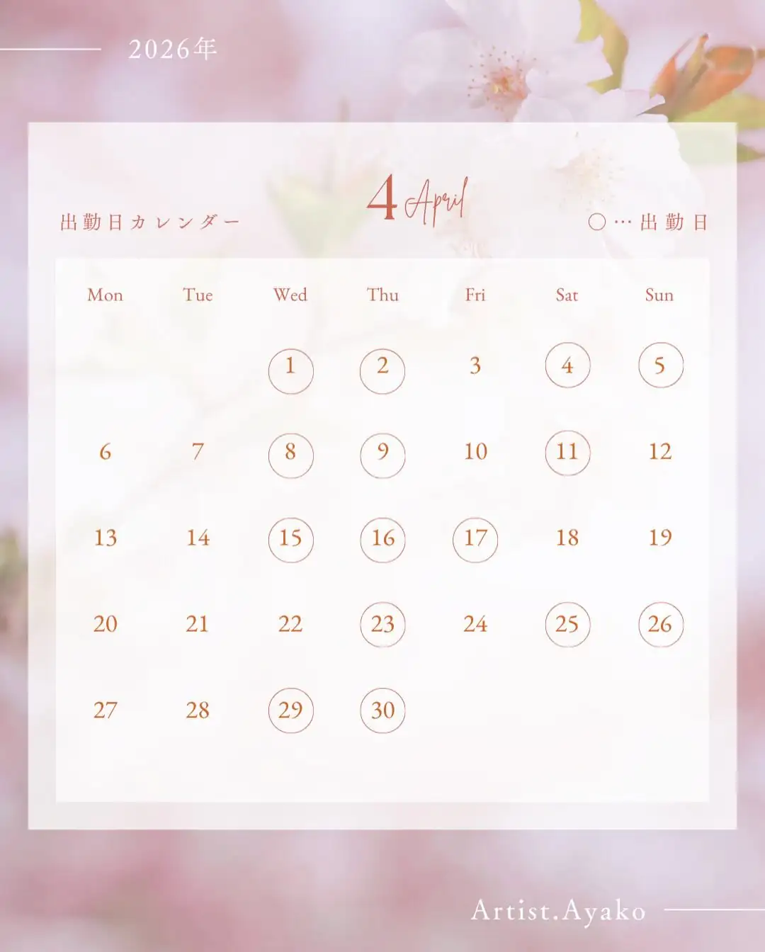 4月のアーティスト出勤日をお知らせいたします✨