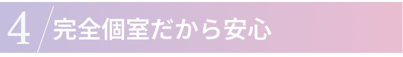 当院は完全予約制のクリニックです。 カウンセリングから施術まで完全個室となっており、安心して施術をお受けいただける環境をご用意しております。