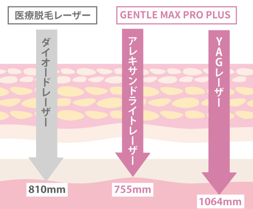 ジェントルマックスプロプラスを使用する事で2種類のレーザーを使用し肌色や毛質に合わせた照射が可能です。
