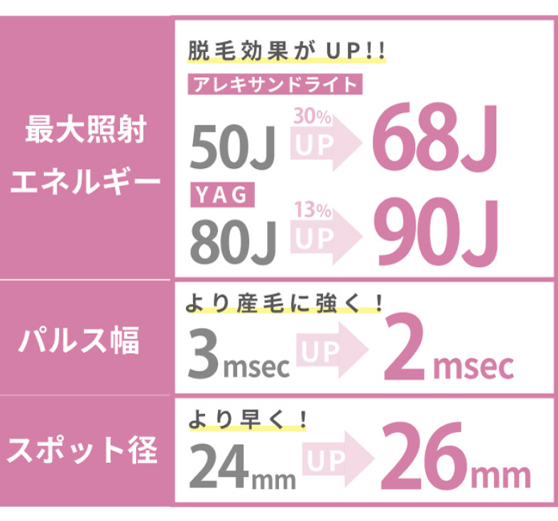 出力、照射スピート共にジェントルマックスプロよりパワーアップした最新機種!