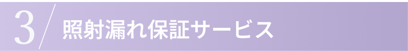 照射漏れががおこらないよう丁寧に照射を行いますが、万が一照射漏れがあった際、照射漏れ部分を無料で照射させて頂きます。