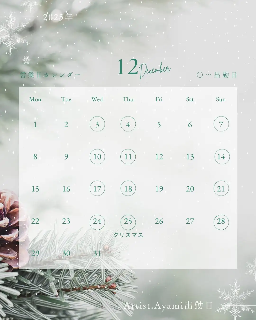 12月のアーティストNanaの出勤日をお知らせいたします✨