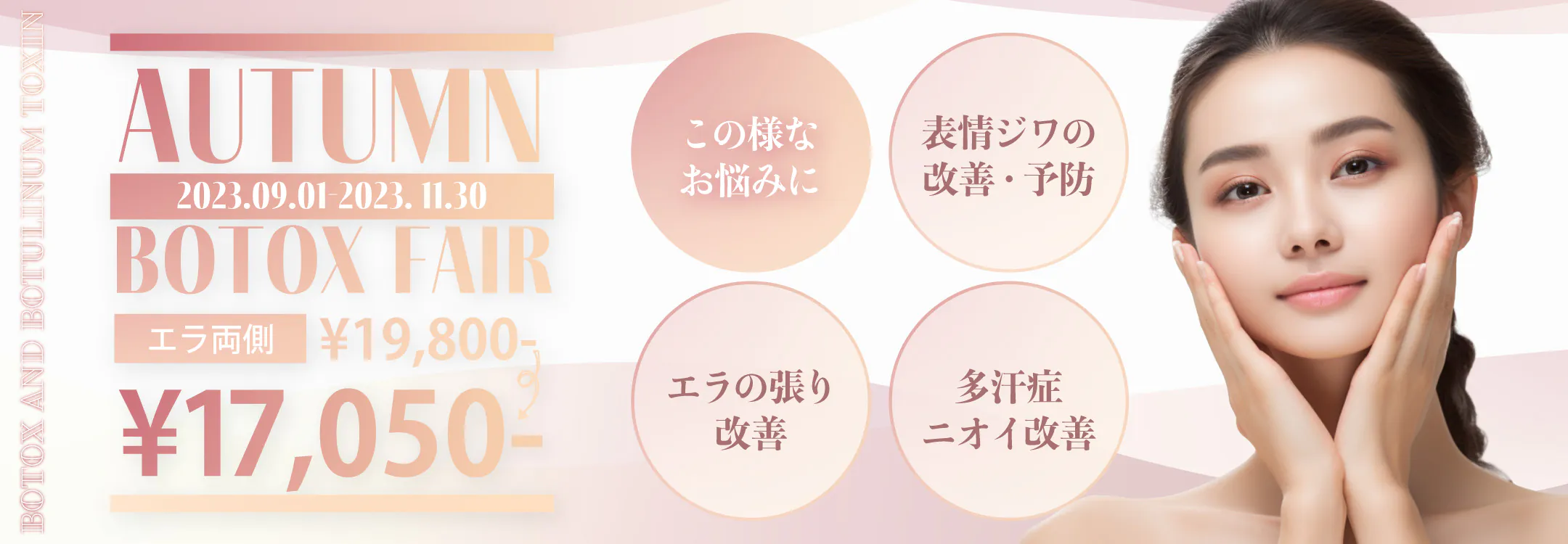 お電話でご予約の際は【ボトックスフェア希望】とお伝えいただくとご案内がスムーズです。