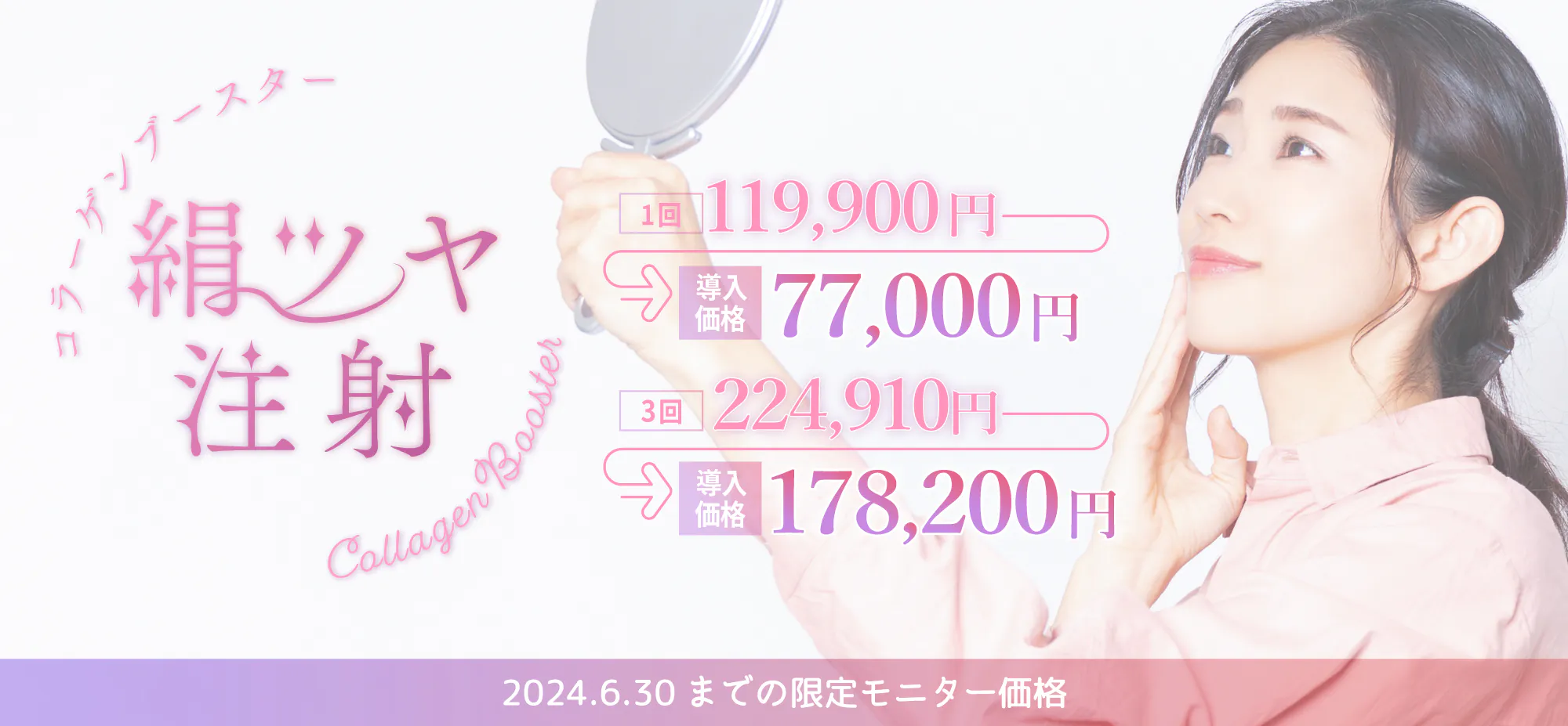 | 院長限定まとめ打ち3cc | 通常料金 ¥264,000(税込) 限定モニター価格 ¥158,400(税込) |