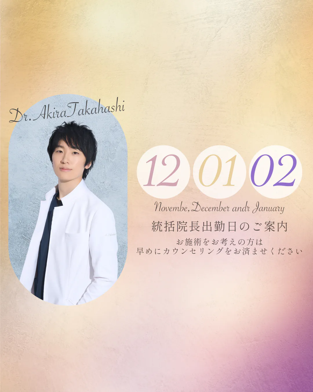 | 院長限定まとめ打ち4cc | 通常料金 ¥352,000(税込) 限定モニター価格 ¥211,200(税込) |