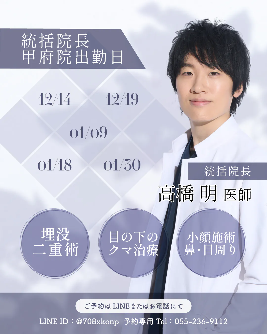 8月6日(日)に統括院長が甲府院へ出張いたします。